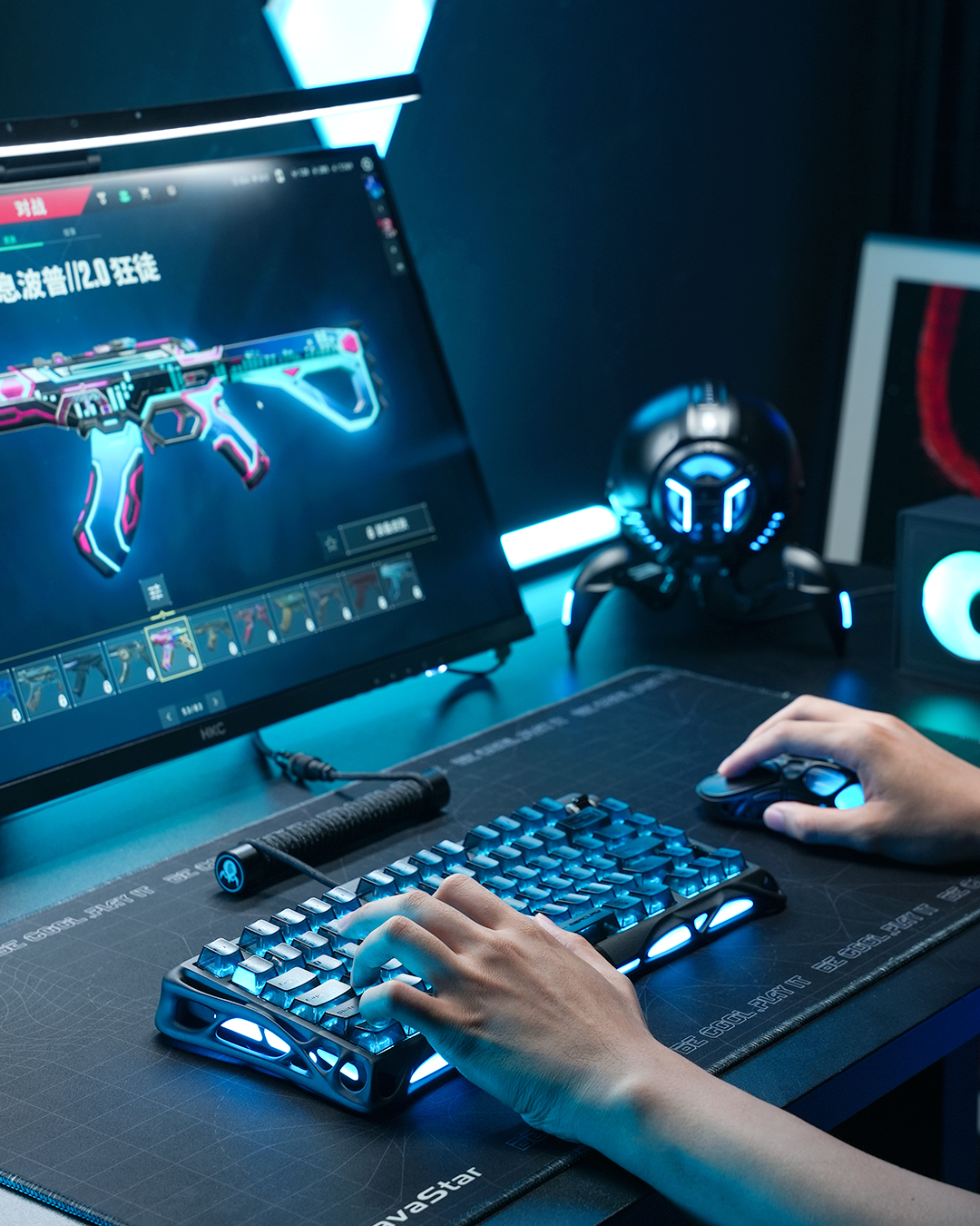 hệ thống đèn RGB với 16 chế độ hiệu ứng và điều khiển riêng biệt cho phần phím và viền hông. dễ dàng tùy chỉnh màu sắc, độ sáng, tốc độ hiệu ứng hoặc chuyển đổi chế độ để tạo phong cách ánh sáng riêng.