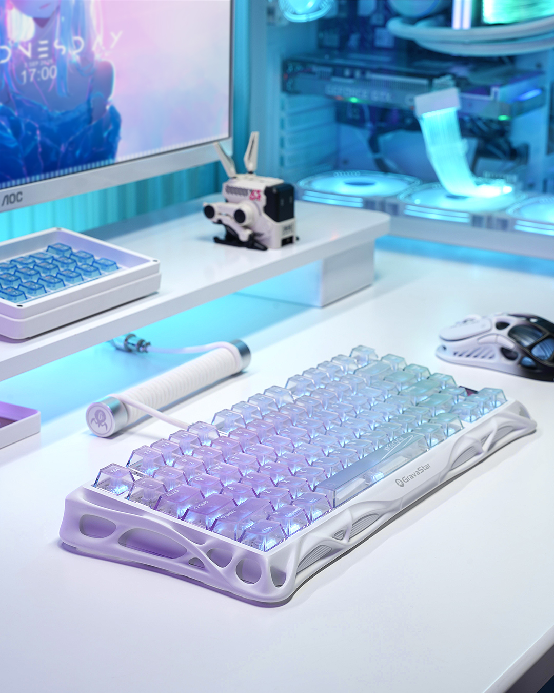 Keycap trong suốt (Crystal-Clear)Bộ phím trong suốt bằng nhựa PC cao cấp tạo nên diện mạo hiện đại, tinh tế, giúp ánh sáng RGB tỏa sáng rực rỡ bên dưới.