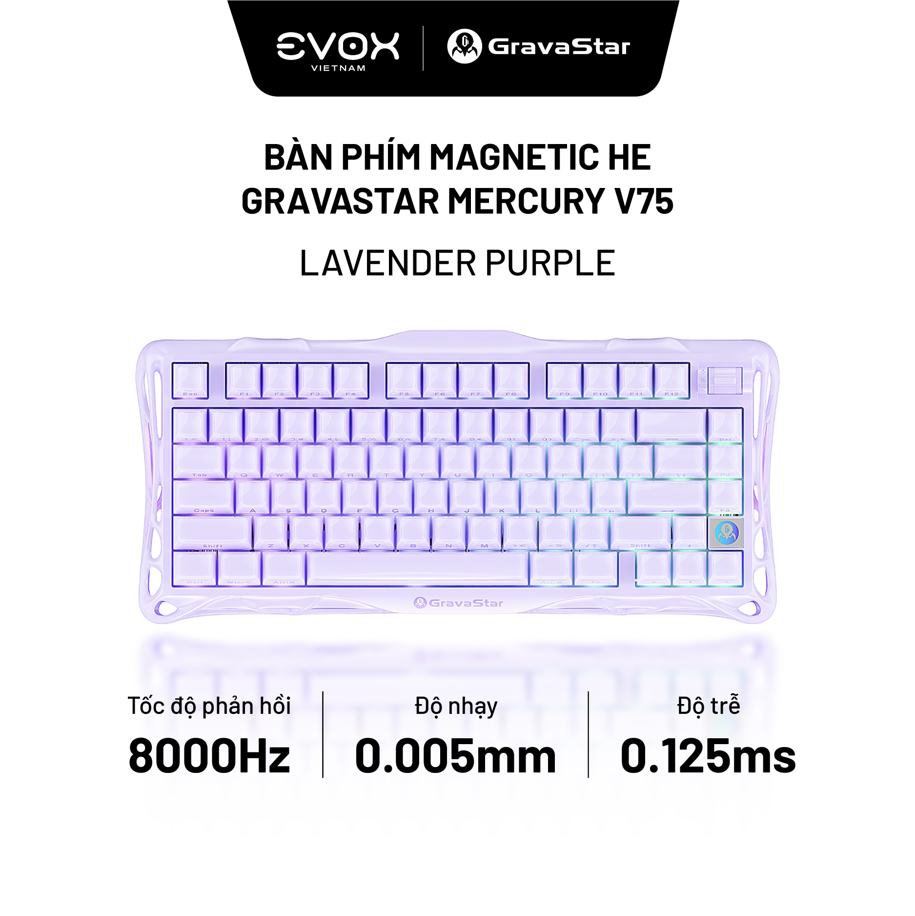 BÀN PHÍM CƠ GAMING HE GRAVASTAR V75 LAVENDER PURPLE