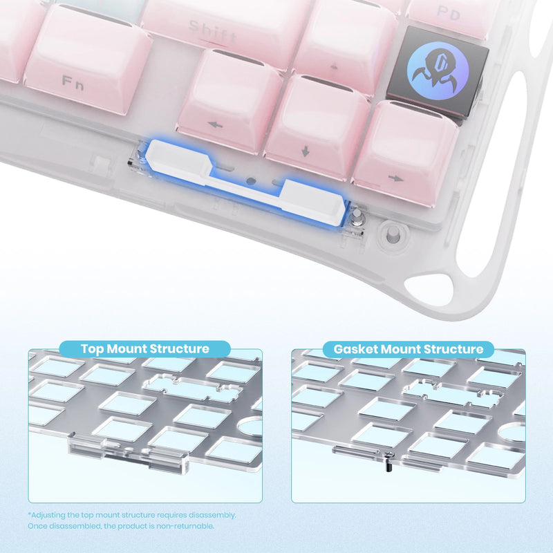 Thiết kế plate khe ngang giúp tối đa khả năng tùy chỉnh. Hỗ trợ cả gasket mount và top mount, cho phép cá nhân hóa cảm giác gõ và tinh chỉnh hiệu năng theo ý muốn.