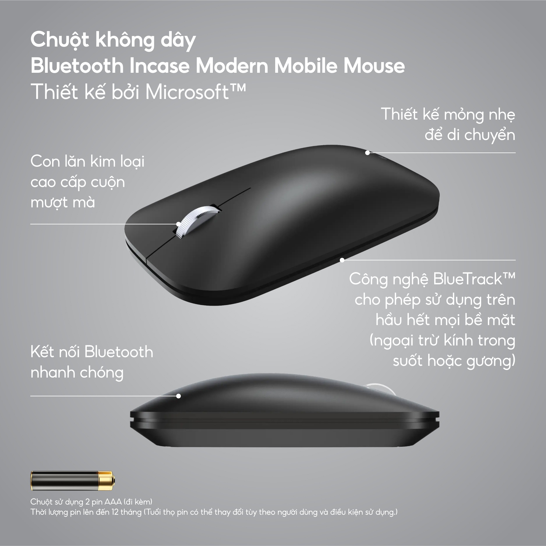 Chuột Bluetooth Incase Modern Mobile Mouse, được thiết kế bởi Microsoft™, là một lựa chọn lý tưởng cho những ai yêu thích sự tiện lợi và tinh gọn trong công việc hàng ngày. Với thiết kế mỏng nhẹ, không chiếm nhiều diện tích như những chiếc chuột truyền thống, chiếc chuột này không chỉ tối ưu về mặt di động mà còn phù hợp với mọi không gian làm việc hiện đại. Sự lựa chọn hoàn hảo để nâng cao hiệu suất làm việc của bạn mà không phải lo lắng về dây cáp lằng nhằng.