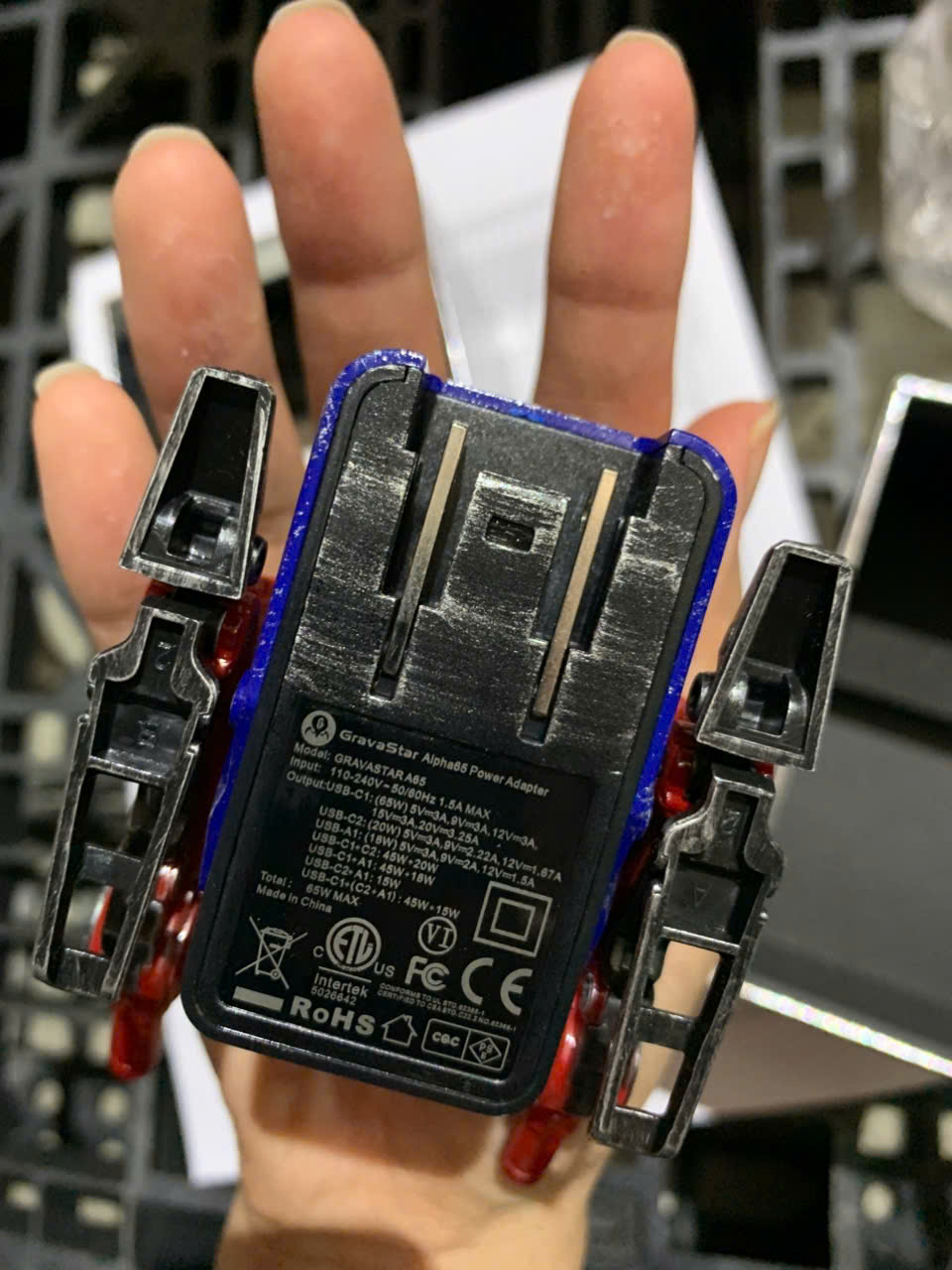 Củ sạc nhanh GravaStar Alpha65 (GAN 65W) Blaze Blue với thiết kế độc đáo giống như một con robot, GravaStar Alpha65 chắc chắn sẽ thu hút sự chú ý của mọi người xung quanh.