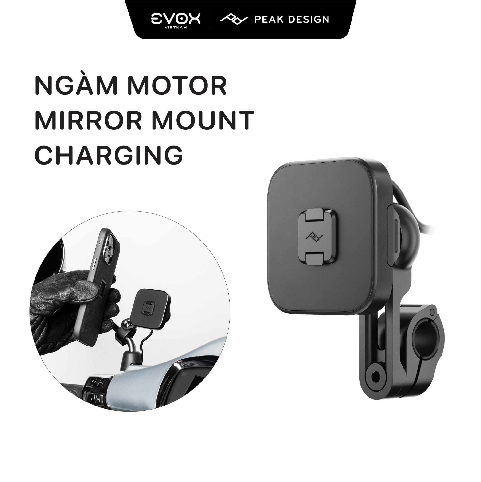 Ngàm Motor Peak Design Mirror Mount Charging - Giải Pháp Gắn Điện Thoại Trên Kính Xe Máy