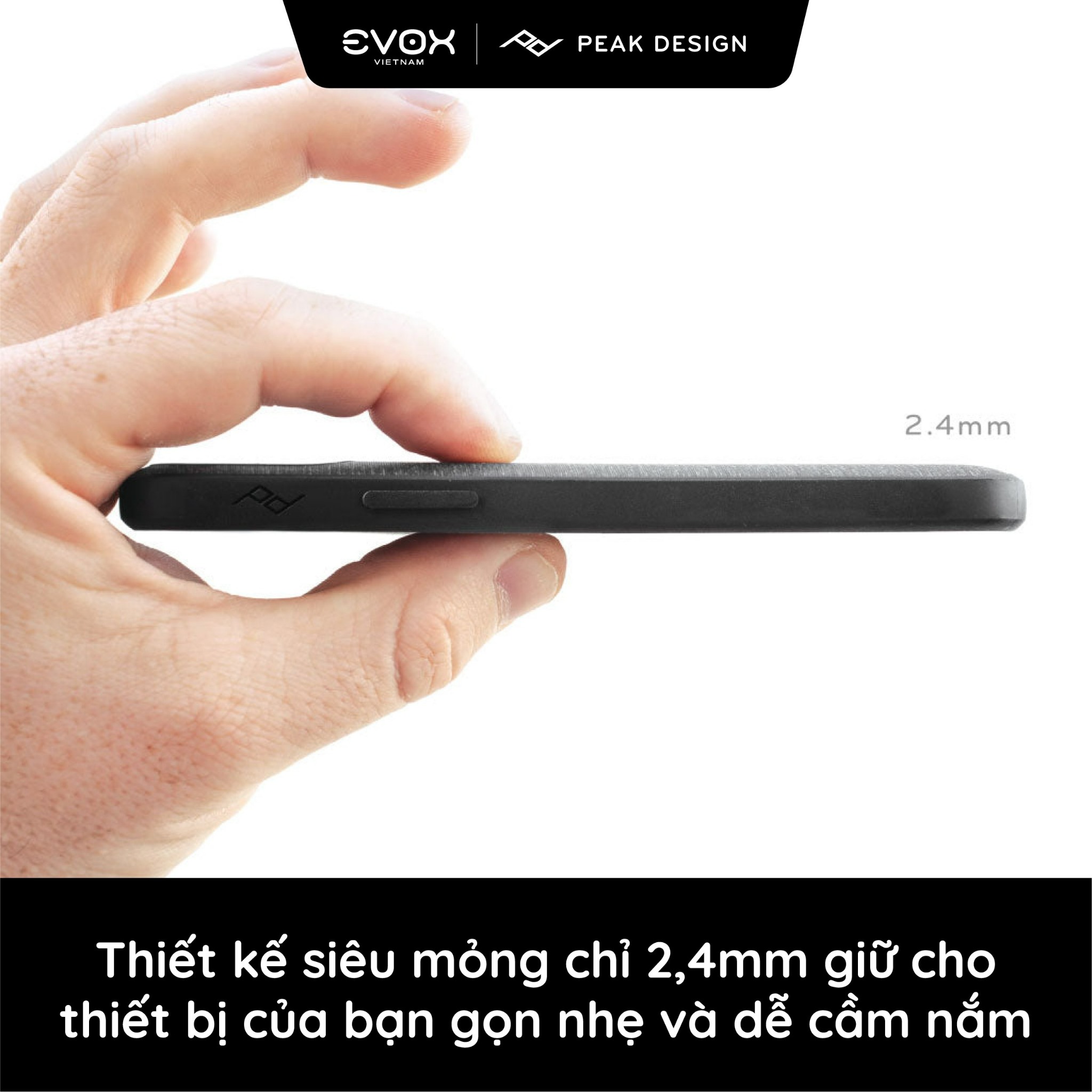 Hệ thống khóa và kết nối từ tính và cơ học SlimLink được thiết kế ngay tại mặt sau của ốp lưng, cho phép bạn kết nối với tất cả các giá đỡ và phụ kiện di động của Peak Design.